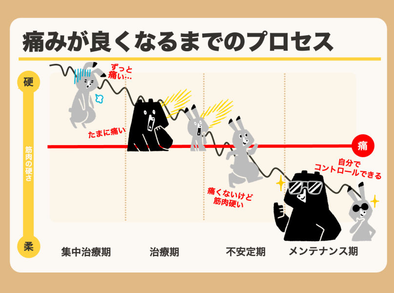 実は、痛みは突然良くなるものではなく、