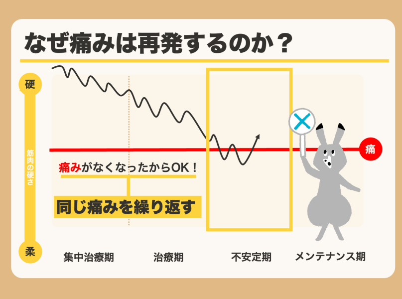 👉 痛みがなくなったタイミングでやめてしまうから